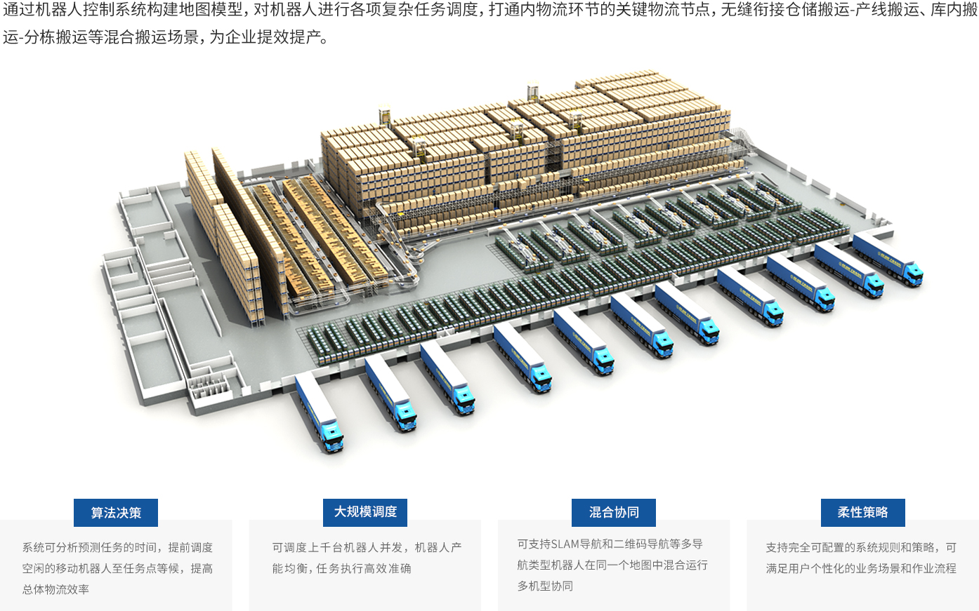 集成自動化物流硬件的同時,結合UPCloud EIS、WCS、PLC等調度系統,進行多設備對接,實現全局效率提升。
