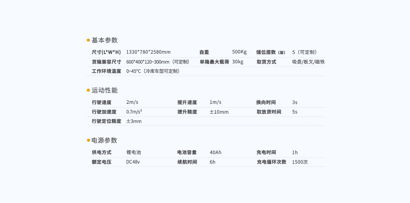 六維覆蓋取放貨,單臺(tái)機(jī)器人覆蓋5層貨架區(qū)間中所有貨位。